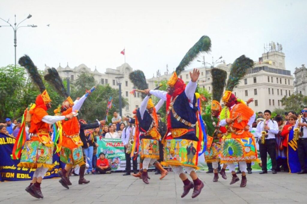 Al ritmo de bailes y danzas como el huaylarsh, taita Shanti, Santiago, los Avelinos, cortamonte, morenadas, huainos, acompañados de bandas, arpas, violines, bombos, flautas, entre otros instrumentos musicales, le dieron un ambiente distinto al Jr. Carabaya y cosecharon numerosos aplausos en su recorrido desde el templo San Francisco hacia la Plaza San Martín.